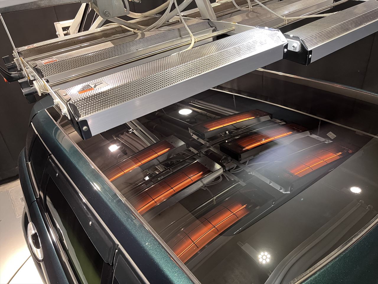 ガラス撥水コーティング施工後は、ヒーター乾燥処理。