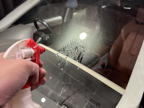 全面ガラスを磨いてスッピン状態にしたら、ここからガラス撥水コーティングを施工していきます。