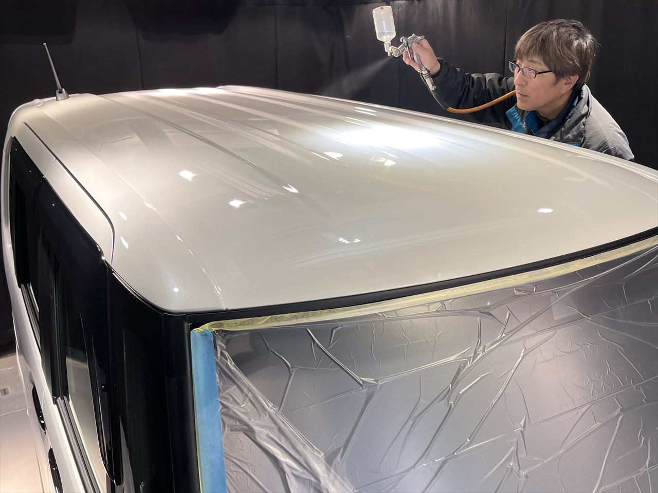 ベースコートでボディ全体を保護したら、ここから更に2層のコーティングをトップコート。