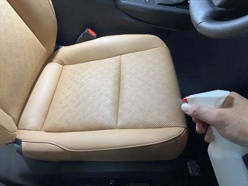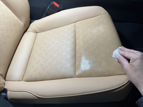コーティング施工部分のクリーニングが終わったら、ここからレザーコーティングを施工していきます。