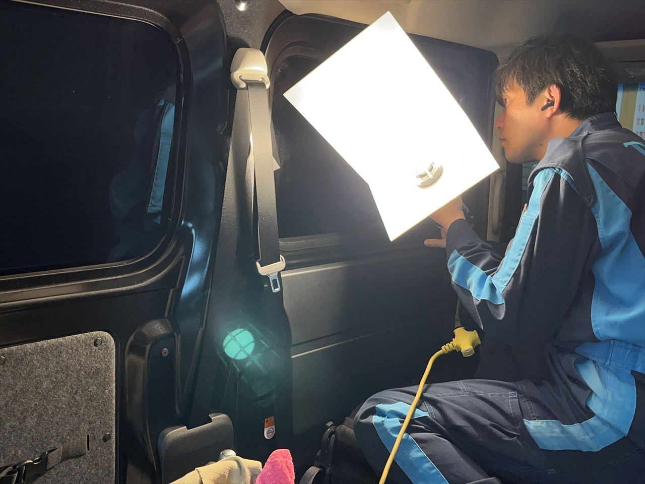 フィルム施工後は、専用ライトを使ってチェックを行います。