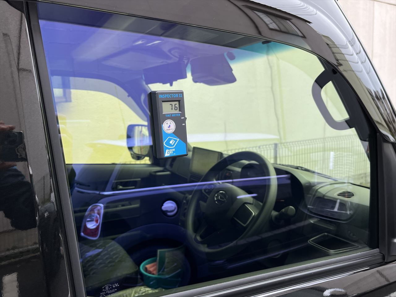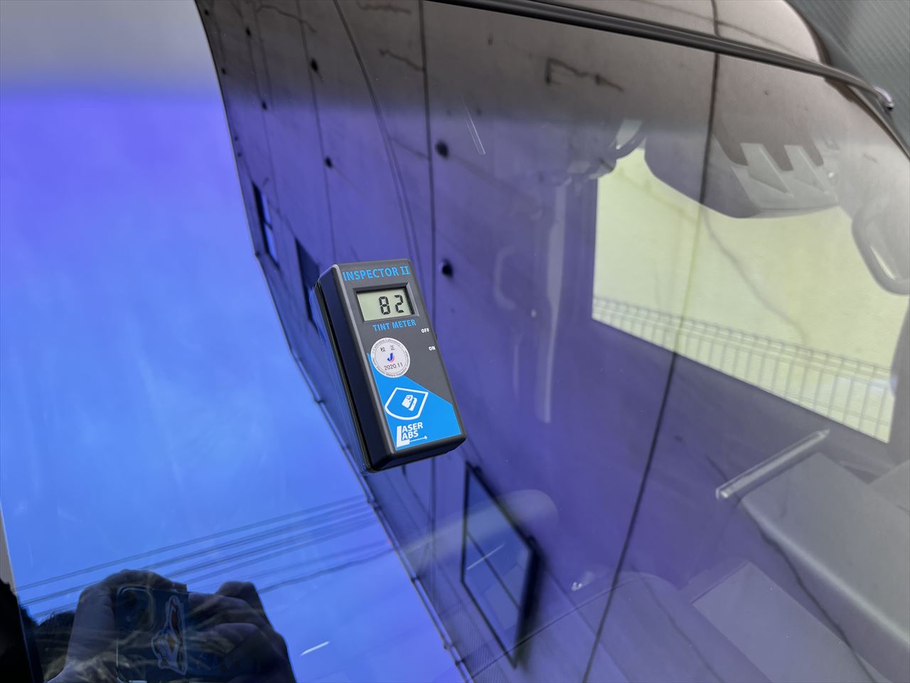 フロントガラスやフロントドアガラスへのフィルム施工の場合、フィルム施工前のガラス単体の可視光線透過率を測定して、問題がないことを確認した上で受付をしています。