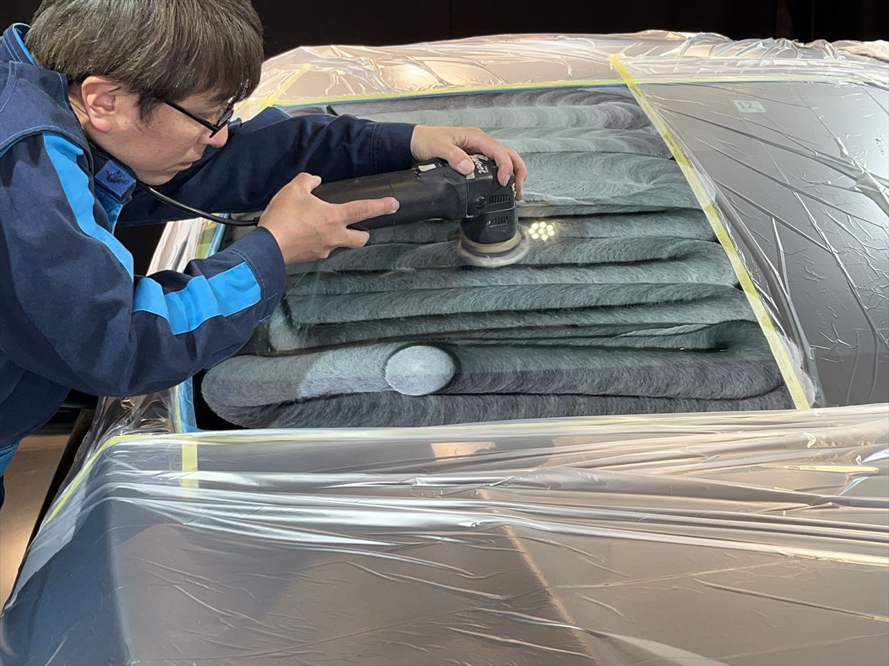 コーティングは下地で決まりますので、まずはプロの研磨技術を駆使したガラス研磨によって、不純物を研磨除去していきます。