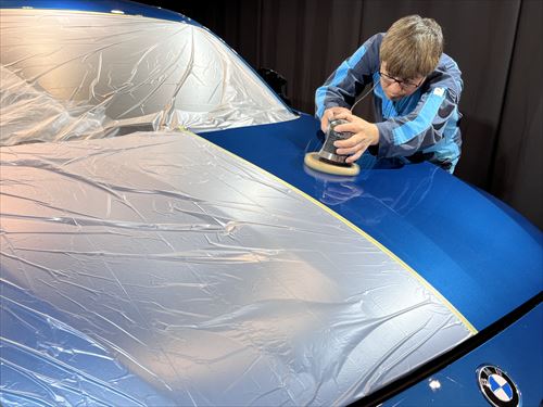いつもの研磨工法で塗装膜厚を極力薄くすることなく、ツヤ・光沢をしっかりと引き出していきます。