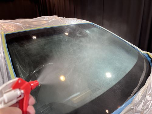 ガラス撥水コーティングを施工していきます。