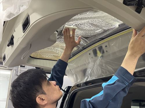スライドドアガラスには断熱スモーク15%を丁寧に施工しました。