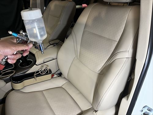 嘔吐臭によく効く消臭剤を部分的にではなく、こちらは車内全体に散布していきます。