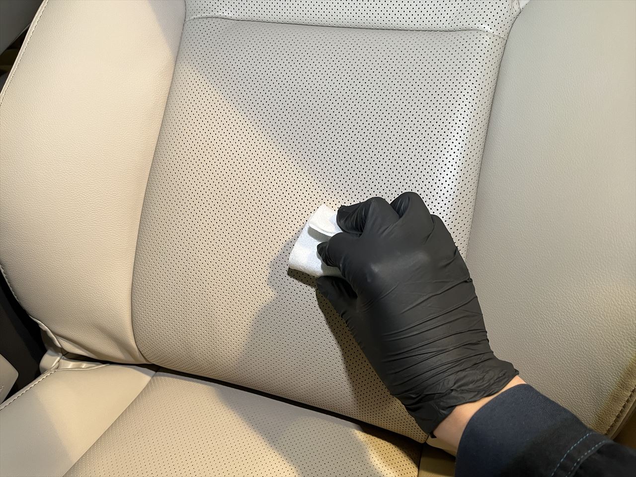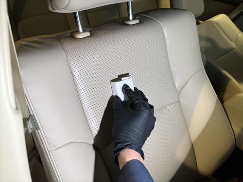 コーティング施工部分のクリーニングが終わったら、ここからレザーコーティングを施工していきます。