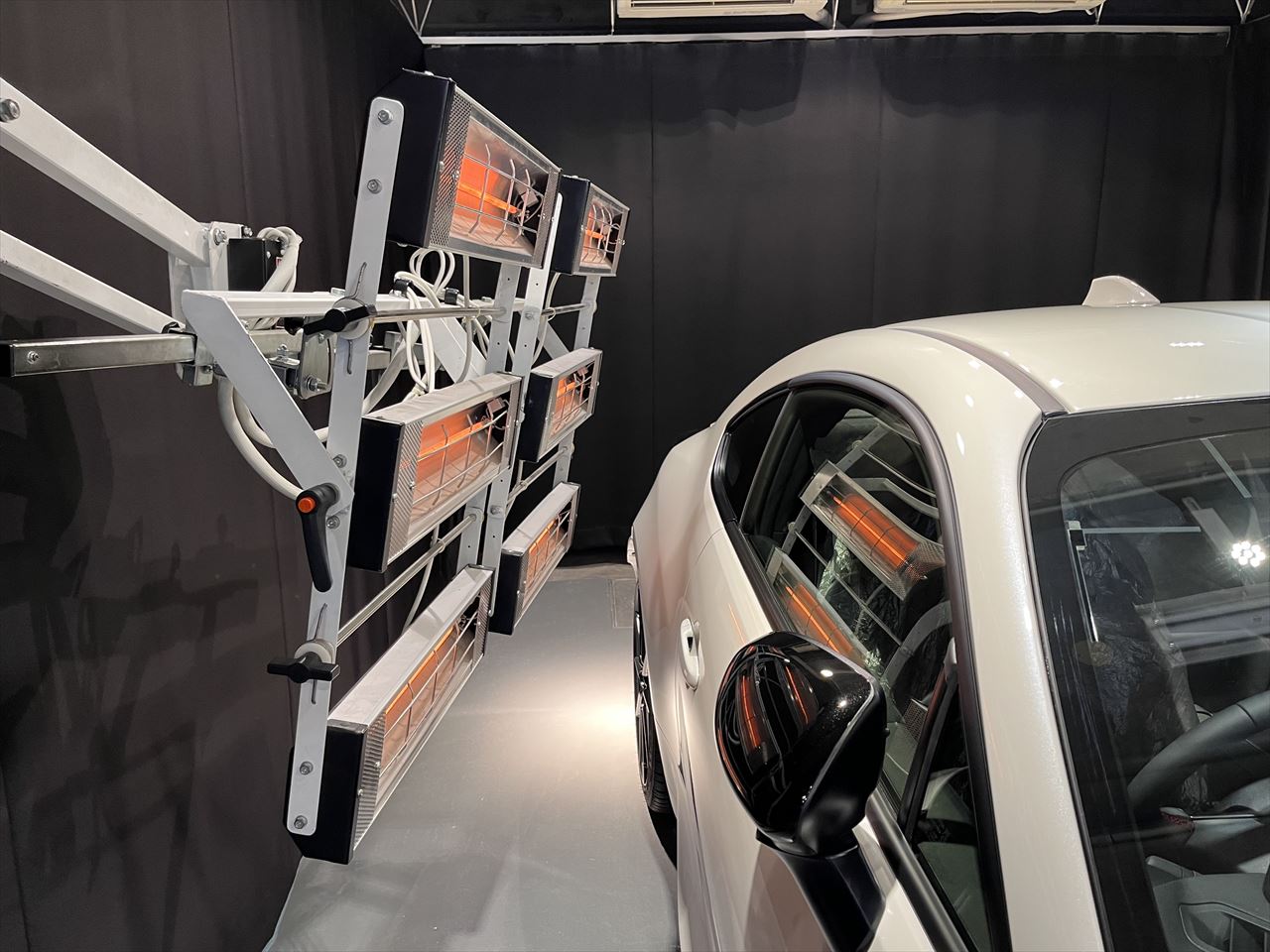 ガラス撥水コーティング施工後は、ヒーター乾燥処理です。