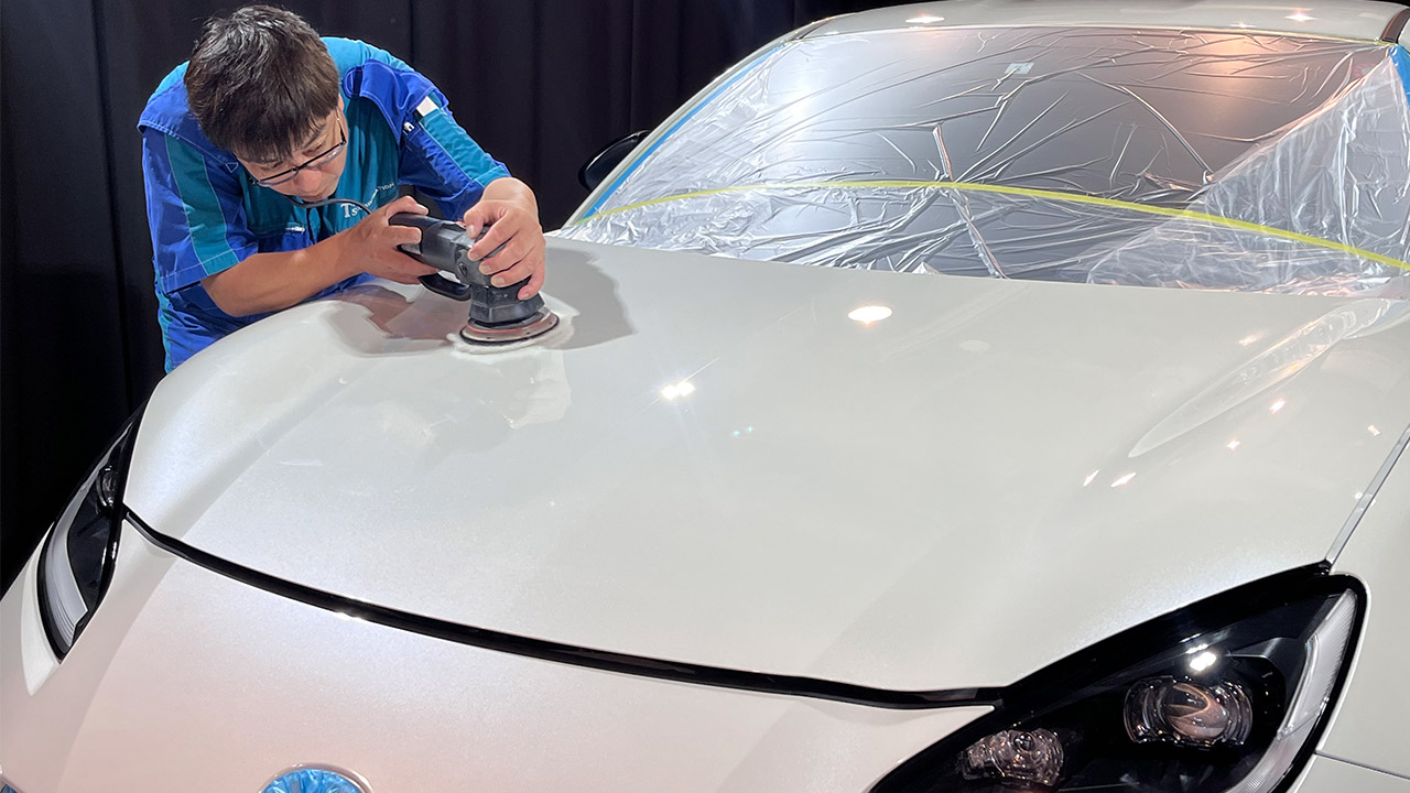 特殊な研磨技術を使って、1層目のベースコートをクリアー補充していきます。