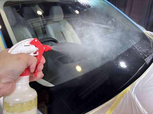 全面ガラスを磨いてスッピン状態にしたら、ガラス撥水コーティングを施工していきます。