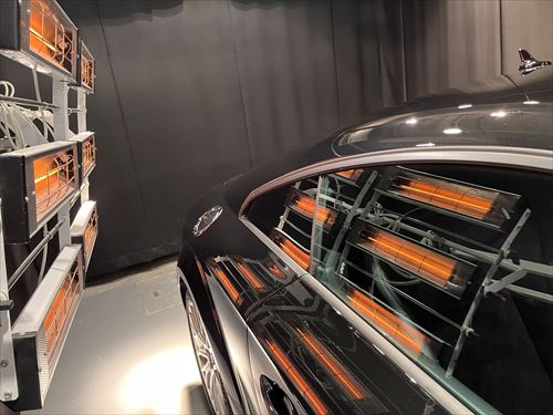 ガラス撥水コーティング施工後は、ヒーター乾燥処理です。