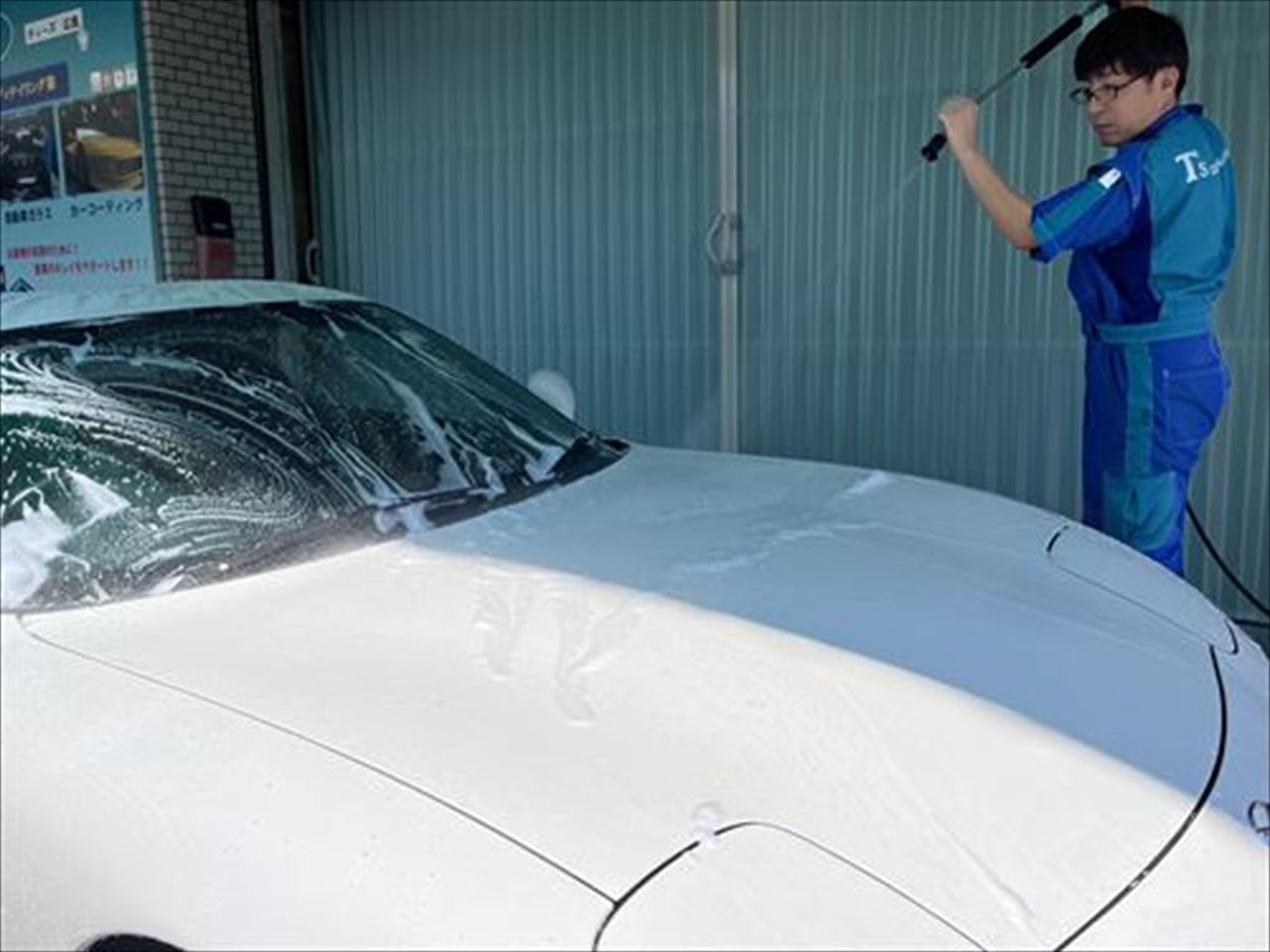 ティーズフィルムでは、この純水洗車と磨き前の下処理と全く同じ工程を、コーティング施工後のメンテナンスでも取り組んでいます。