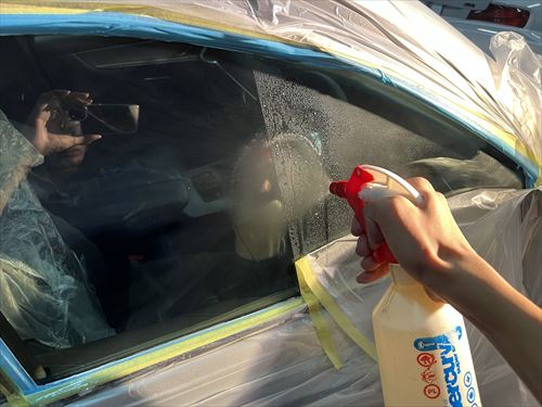 ガラス撥水コーティングを施工していきます。