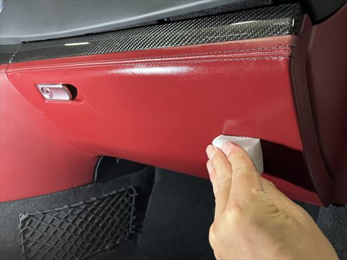 シート以外のレザー素材もクリーニングしていきます。