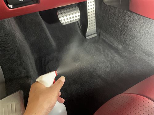 車内全体のクリーニングが終わったら、消臭剤を散布していきます。