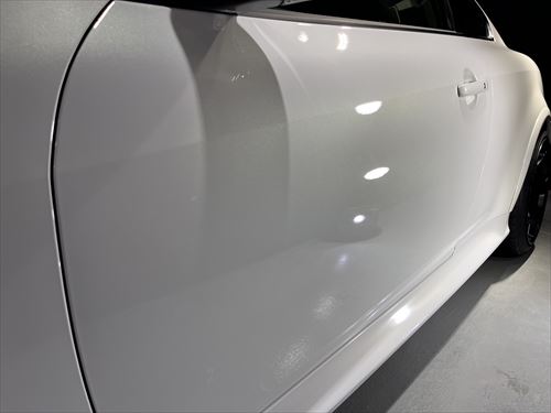 ティーズフィルムのボディ磨きは、ただ単にダメージを磨いて消しているだけではなく、塗装膜厚計や光沢計等の計器類を使用した「塗装を数値化した研磨」によって、コーティングの土台となる塗装を如何に減らさないか・・・を常に考慮しながら、ツヤ・光沢をしっかりと引き出しています。
