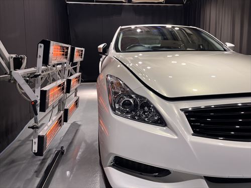 コーティング施工後はカーボンヒーターを使って、1パネル毎温度管理しながら乾燥処理をしていきます。