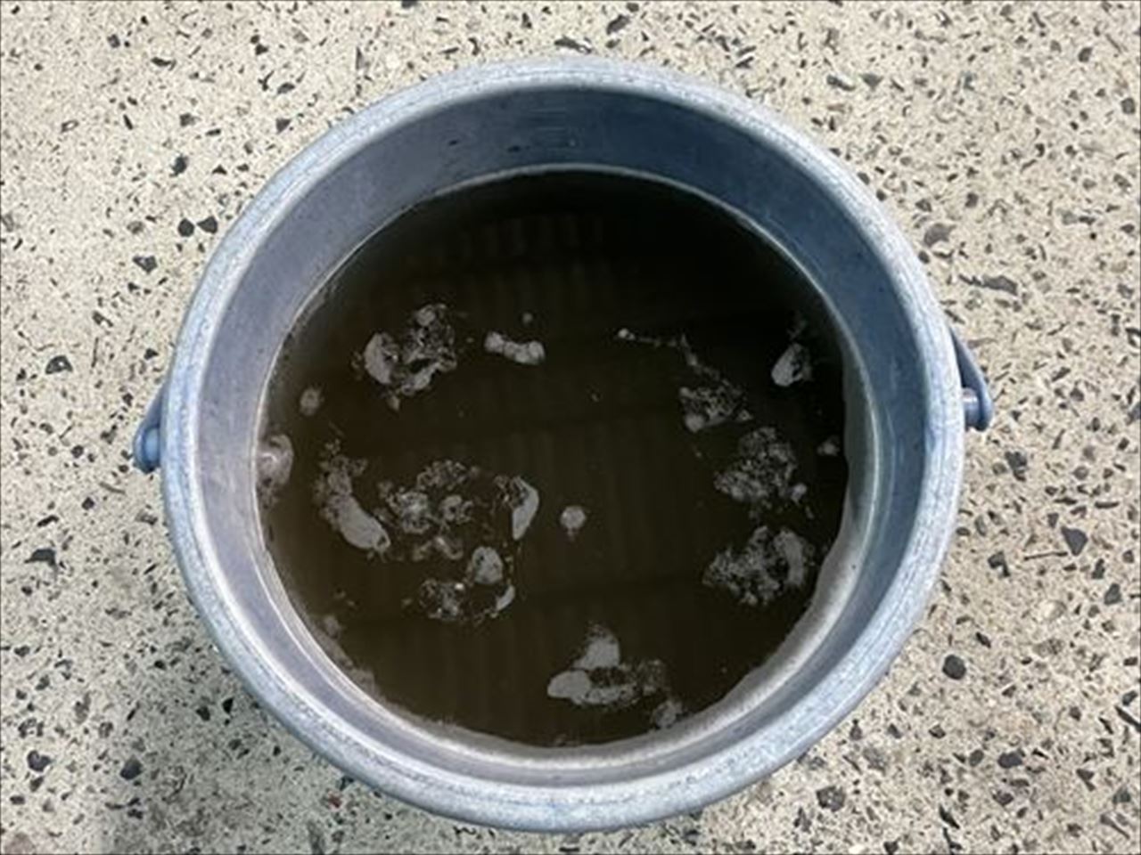 フロアカーペットやフロアマットをクリーニングすると、スチームクリーナーで使用した水がこんなに真っ黒になりました。