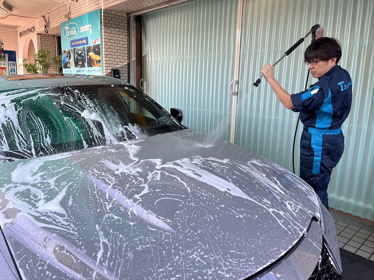 ティーズフィルムではこの純水洗車と磨き前の下処理と全く同じ工程を、コーティング施工後のメンテナンスでも取り組んでいます。