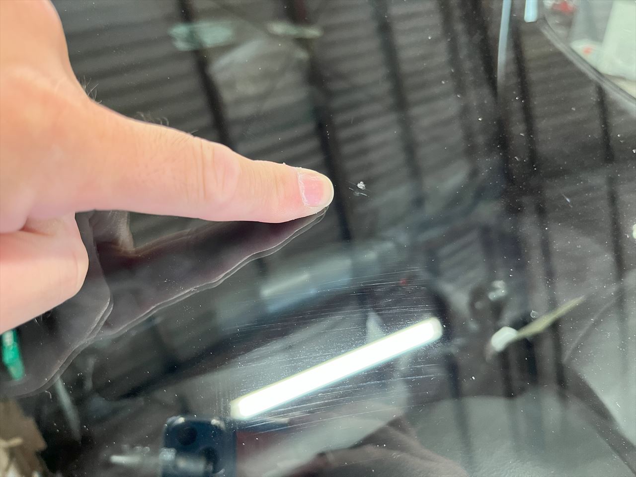 フロントガラスリペアで十分修理が可能な状態ですが、お客様のご要望によりフロントガラス交換をすることになりました。