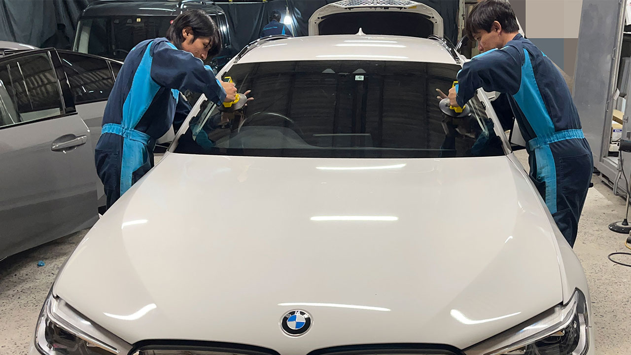 BMW 523dツーリングのフロントガラス交換・カーフィルム・ガラス撥水コーティング