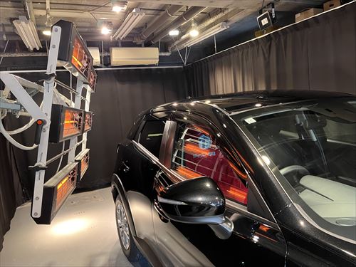 ガラス撥水コーティング施工後は、ヒーター乾燥処理をしていきます。