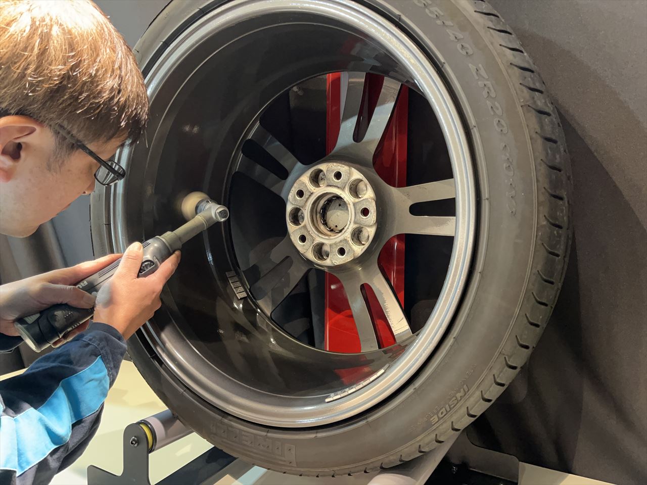 ホイールを取り外して施工していきます。