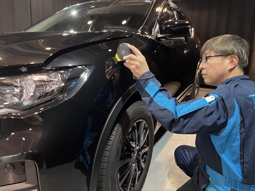 塗装修理箇所の磨き直しが終わったら、次はコーティングに取り掛かります。