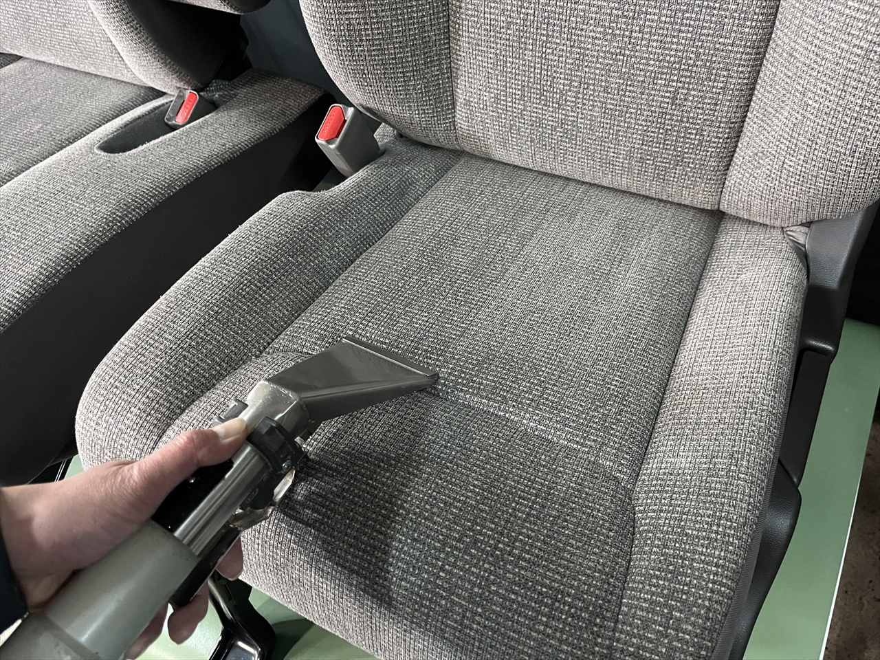 車内全体のクリーニングは、生地や素材にあった除菌効果のある特殊溶剤を使い分け、あらゆるクリーニング技術を駆使して様々な汚れをキレイにするだけでなく、臭いに応じた消臭剤の散布や抗菌効果が見込めるオゾン脱臭まで行う「2重3重の徹底クリーニング」を行っています。