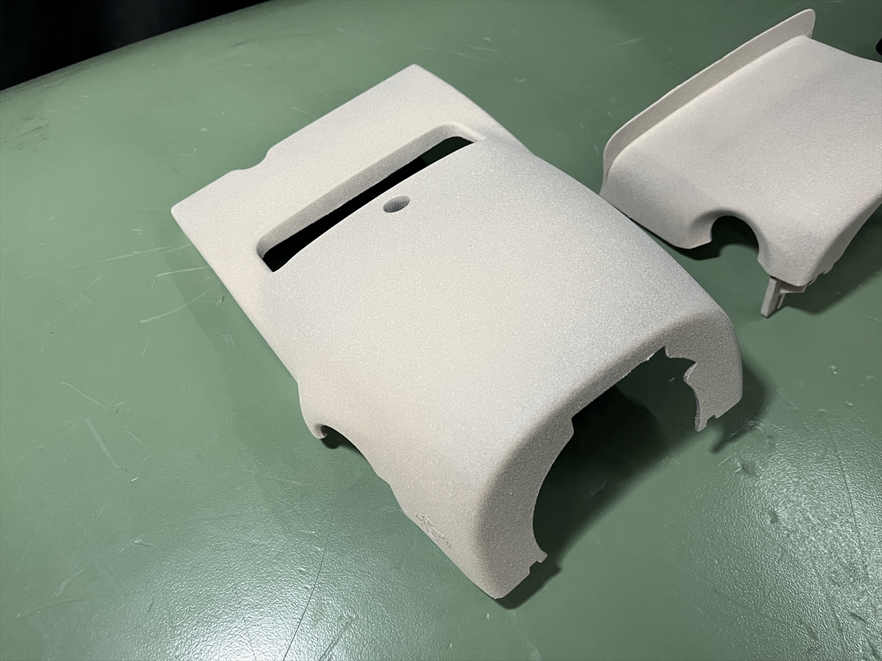 お持ち込みいただいたエアバックとコラムカバーのパーツに、フロッキーコーティング(植毛塗装)をご依頼いただきました。