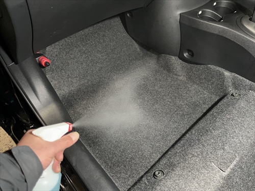 しっかりと乾燥させた後、シートやマット等を元通りに取り付けたら、更に消臭剤を散布していきます。