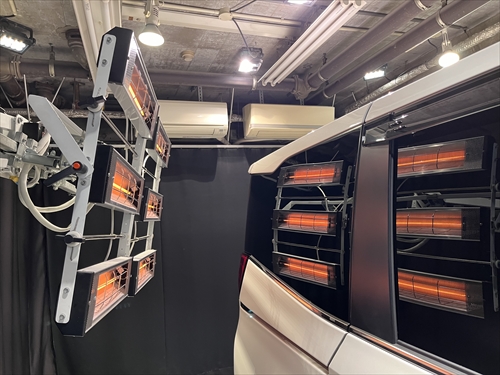ガラス撥水コーティング施工後は、ヒーター乾燥処理をしていきます。
