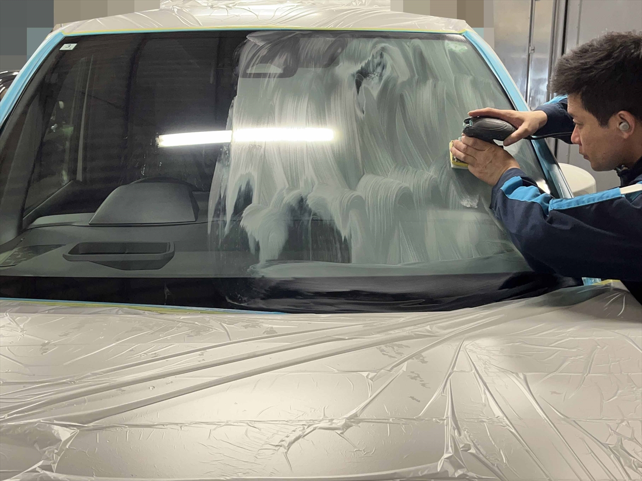 ガラス撥水コーティングをする上で、このガラス研磨は新車・経年車を問わず必須工程となります。