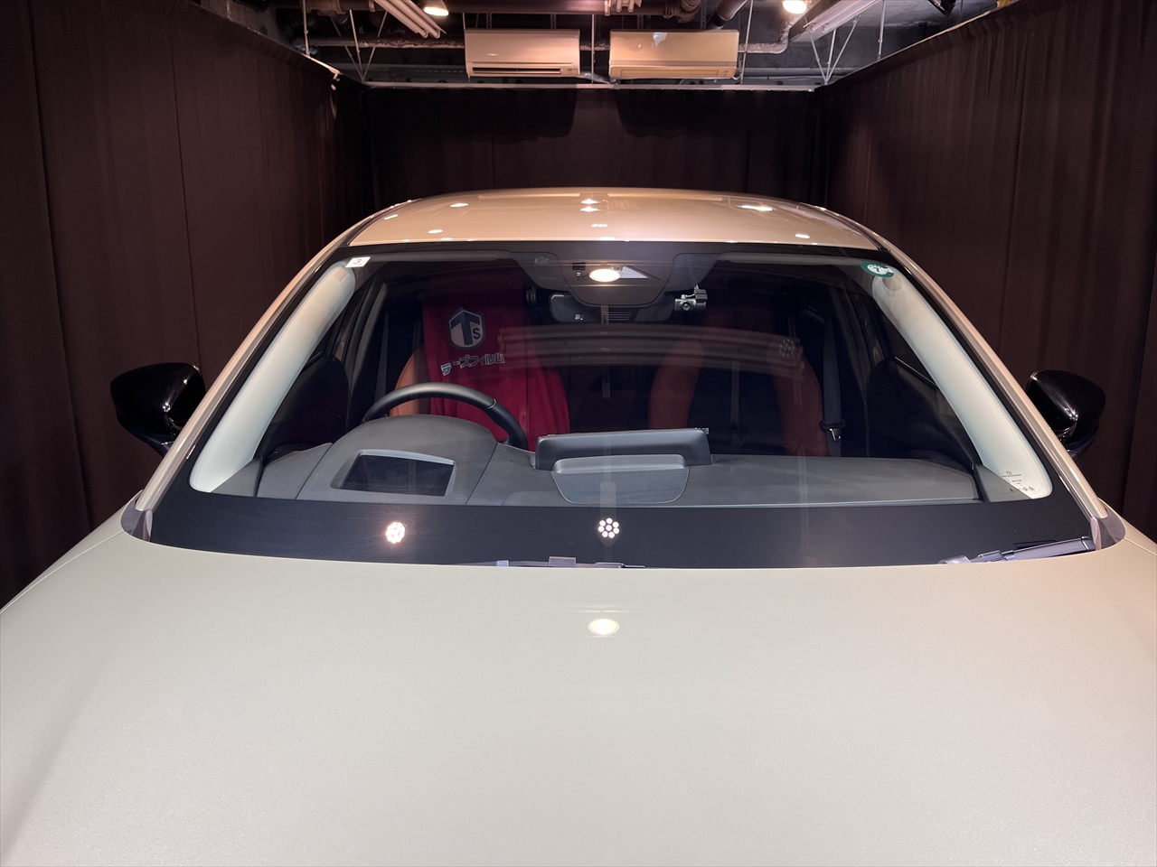 ガラス撥水コーティング施工後は、ヒーター乾燥処理をしていきます。