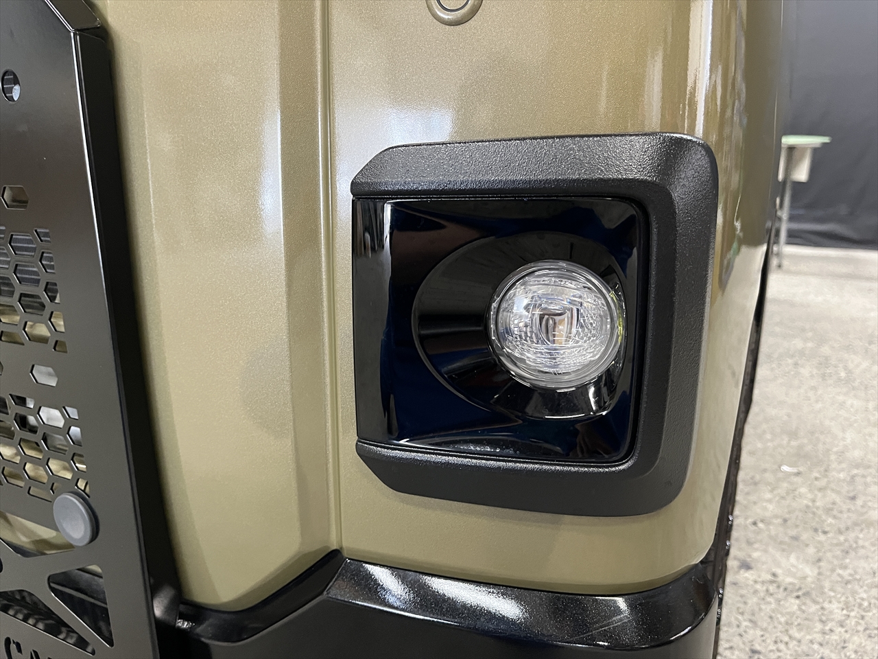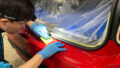 グリルとフォグガーニッシュのブラック部分・ドアミラー・スライドレールエンドカバー・給油口カバーを AVERY DENNISON Carbon Fiber Black でラッピングしていきます。