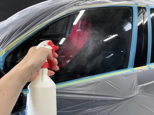 ガラス撥水コーティングを施工していきます。