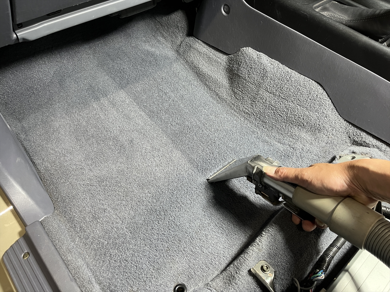 第一段階のクリーニングが終わったら、ここから更にスチームクリーナーを使用した高温水による洗浄&吸引クリーニングをしていきます。