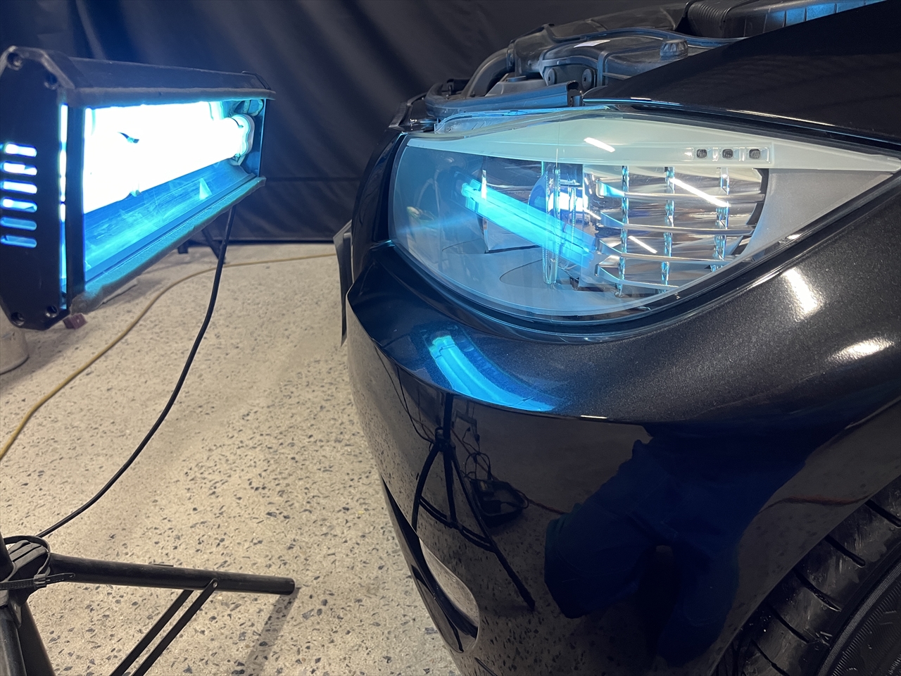 ティーズフィルムのヘッドライトリペアは、劣化被膜を研磨除去した上で新たな被膜を形成させる工法です。