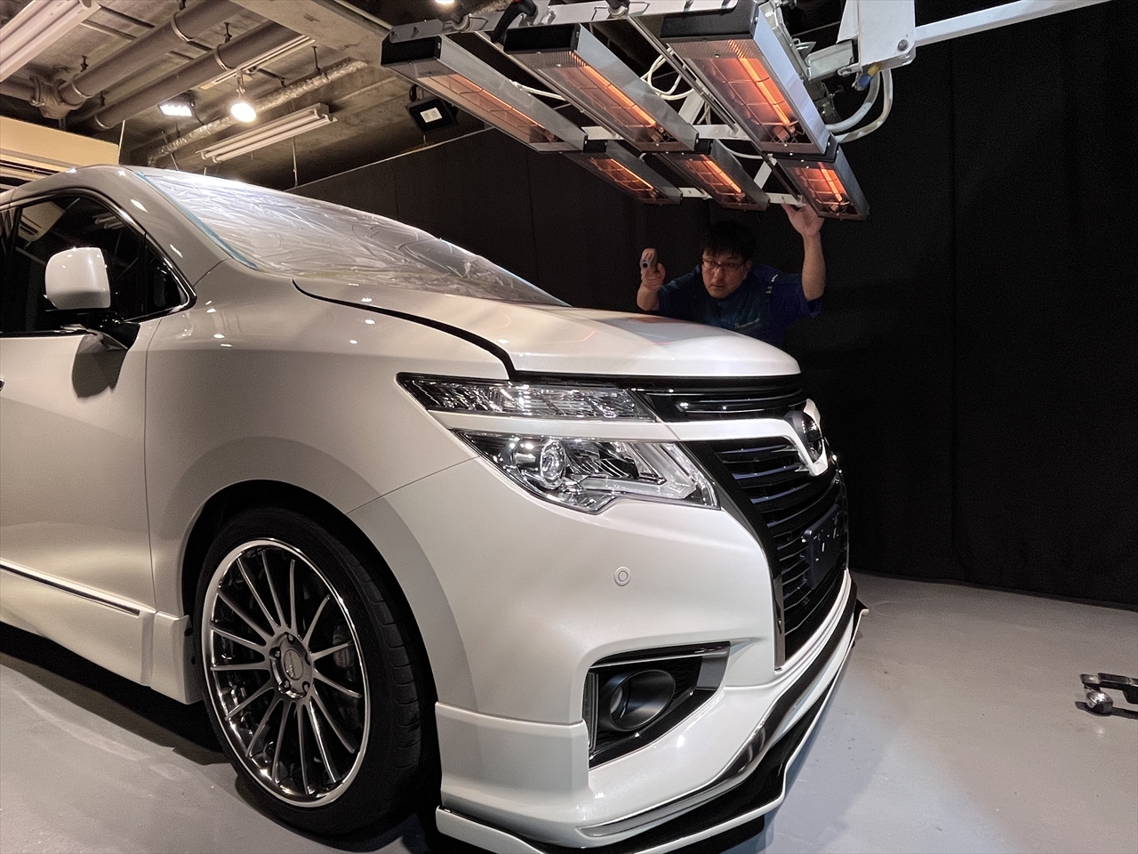 コーティング施工後はカーボンヒーターを使って、1パネル毎温度管理しながら乾燥処理をしていきます。
