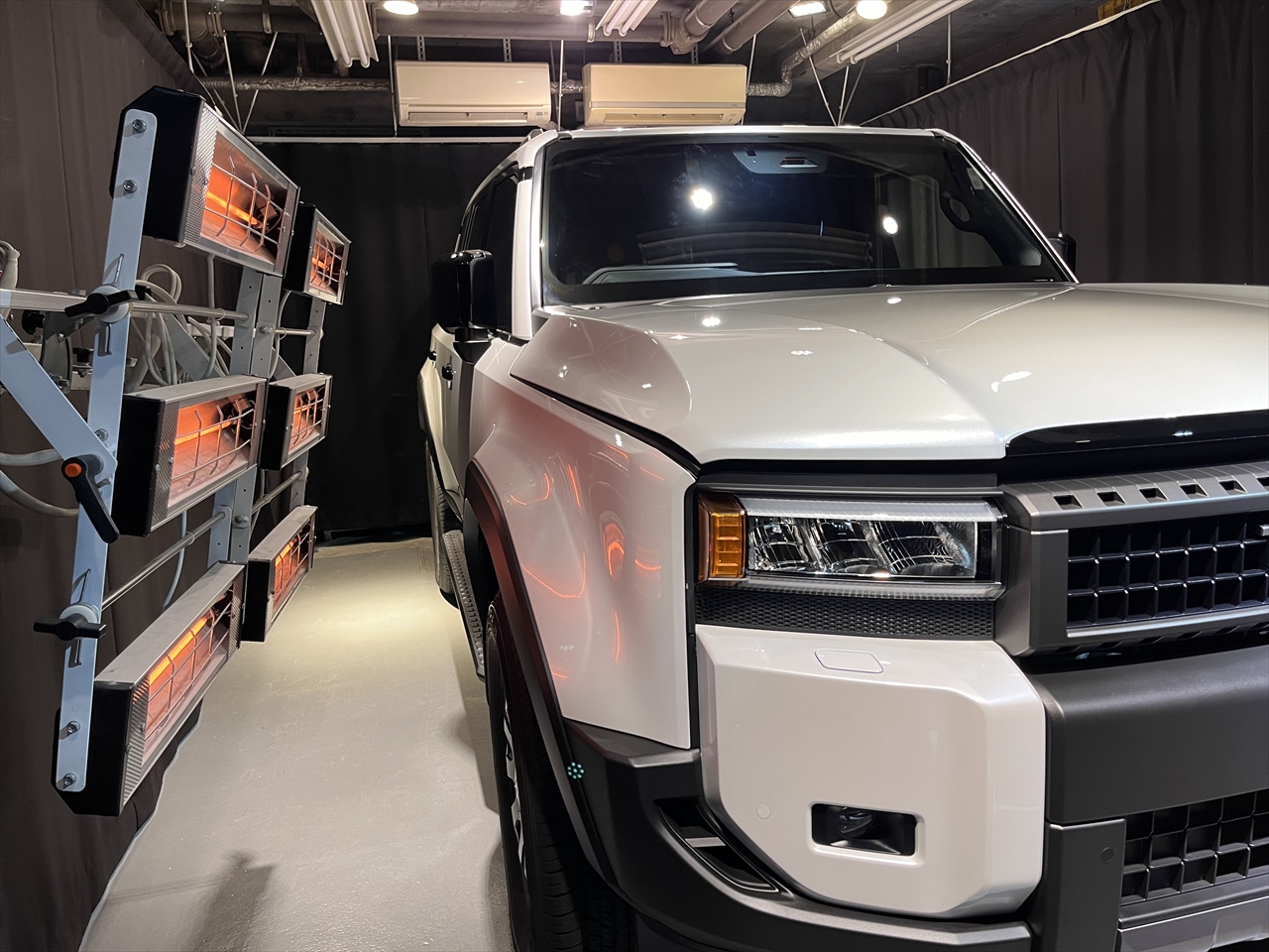 コーティング施工後は、カーボンヒーターを使用した乾燥処理をしていきます。