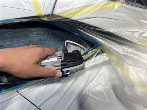キッチリ養生をした後、いつものようにガラスの状態を確認していきます。