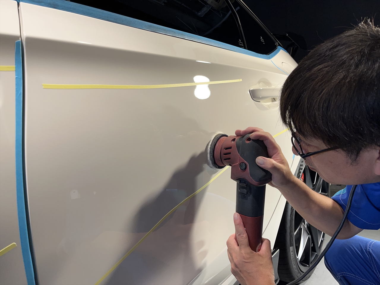 このボディ磨きが終わったら、次はコーティングの部分施工に取り掛かります。