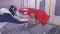 特殊照明を配置したコーティングブース内で塗装修理した部分のチェックをしていきます。