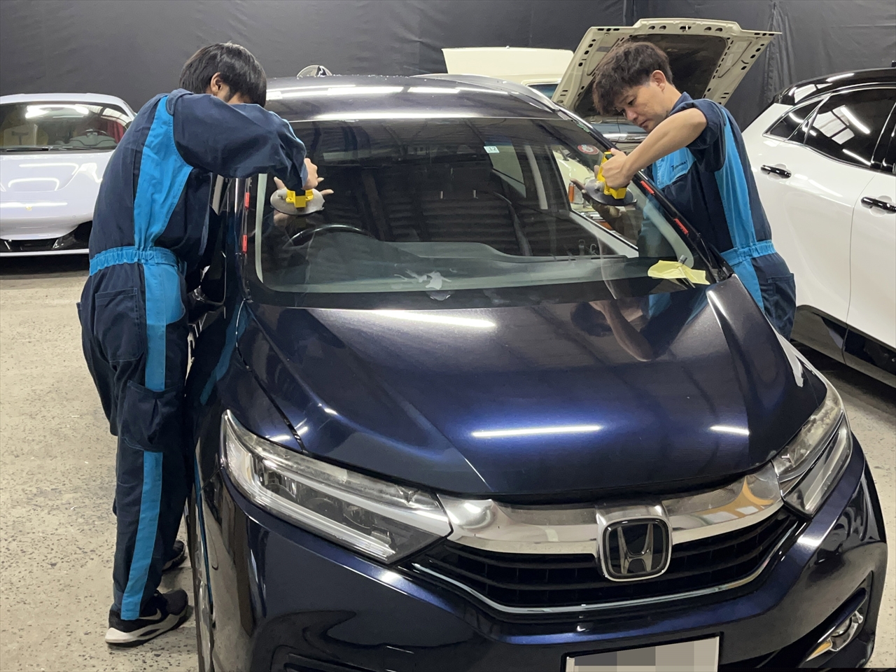 お客様とご相談させていただいた結果、UVカットソーラーガラスを使ったフロントガラス交換とエーミング 校正作業をご依頼いただきました。