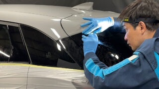 新車のガラスは不純物だらけですので、ガラス研磨を行ってクリアな状態にしていきます。