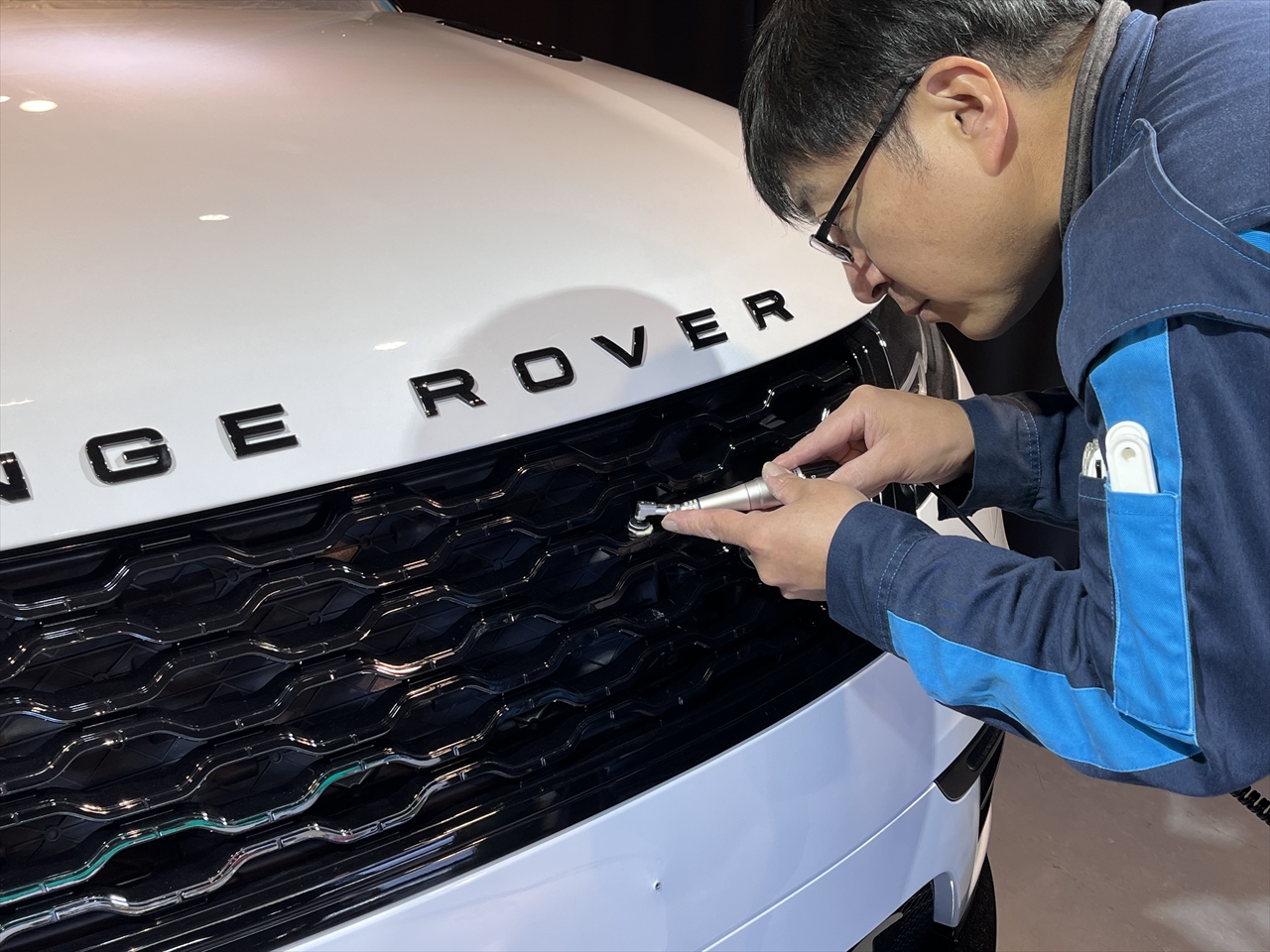 特殊照明を配置したコーティングブース内において、塗装膜厚計や光沢計等の計器類を用いながらボディチェックをしていきます。