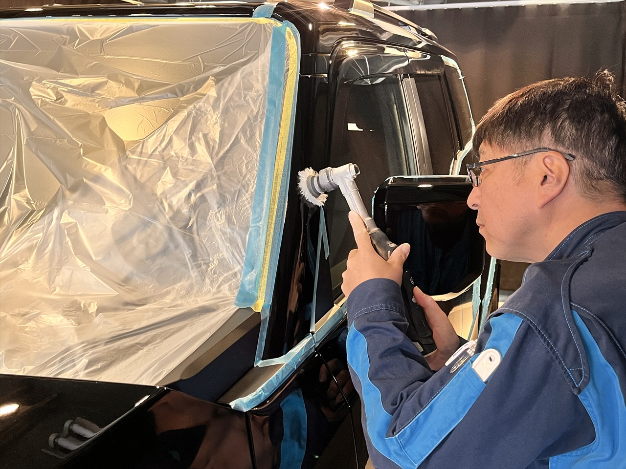 特殊な研磨技術を使って、1層目のベースコートをクリアー補充していきます。