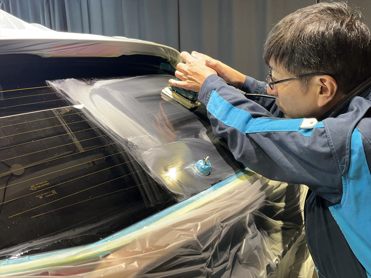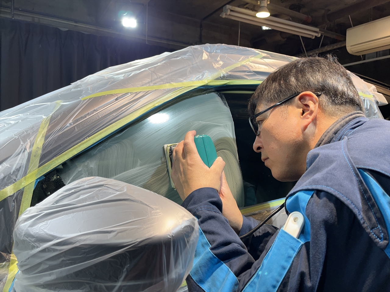 コーティングは下地が大事ですので、ガラスを磨いてキレイにする必要があります。