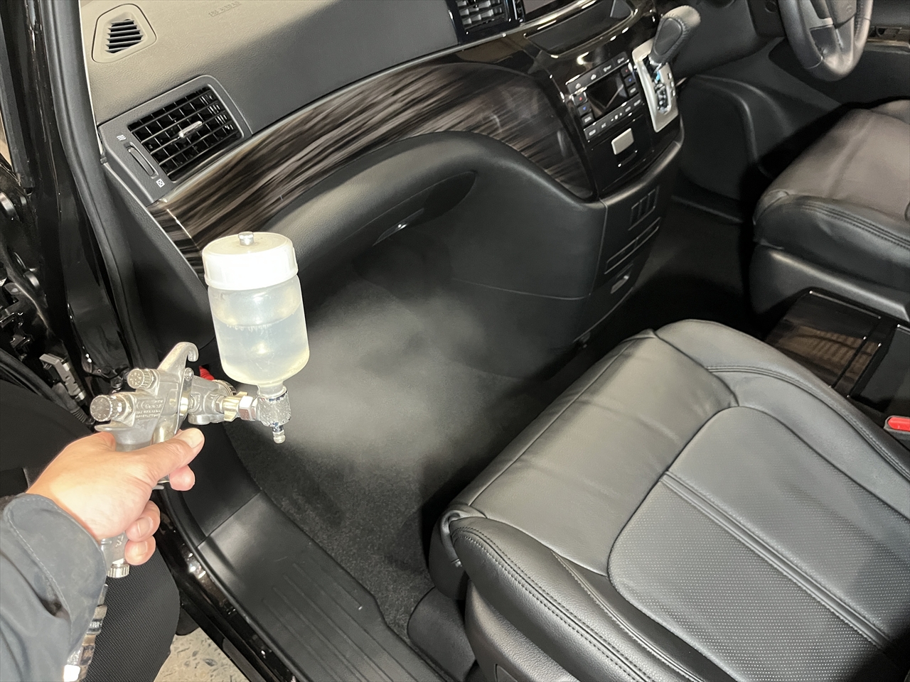 レザーシートカバーを取り付けたら、ここから更に消臭剤を散布していきます。